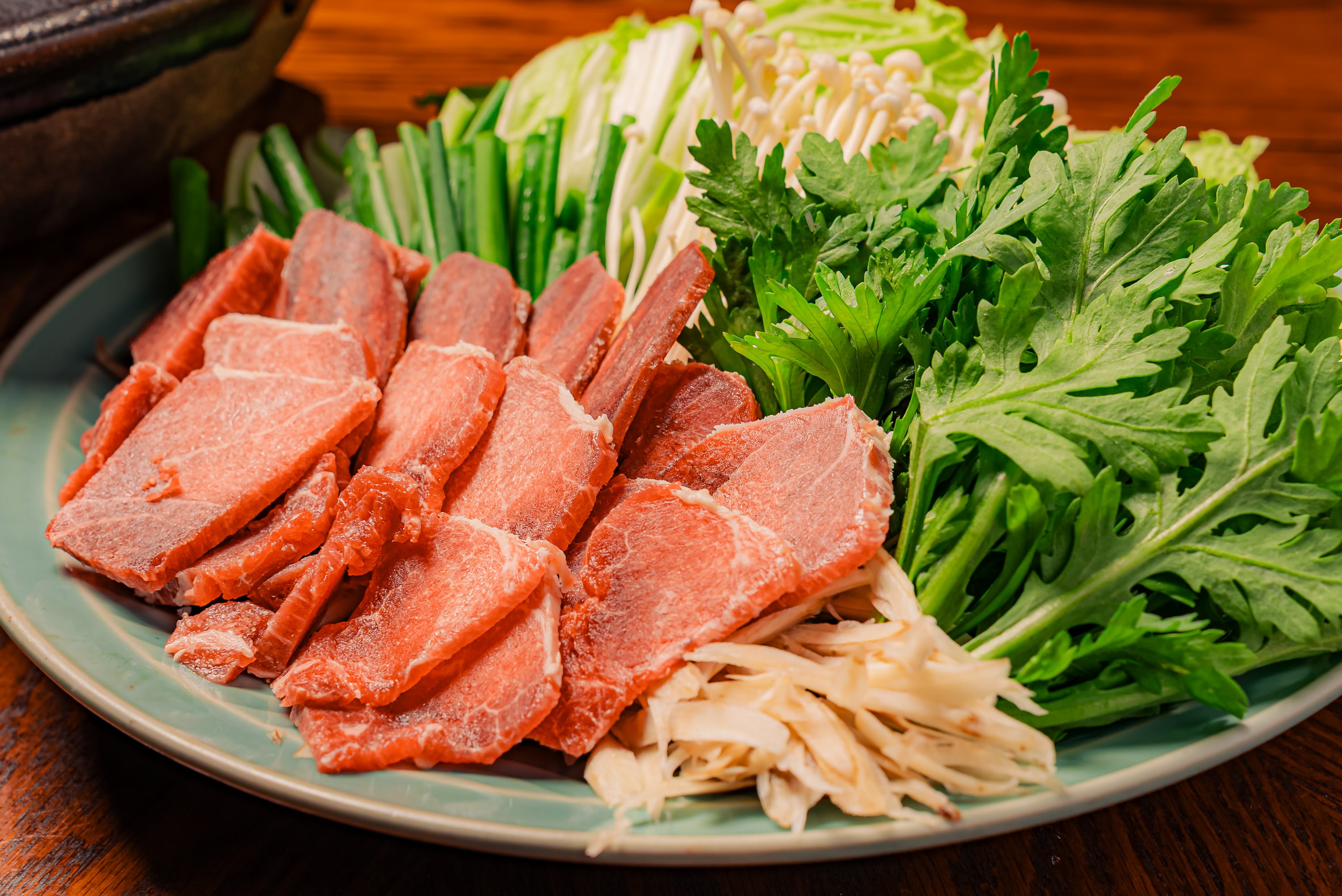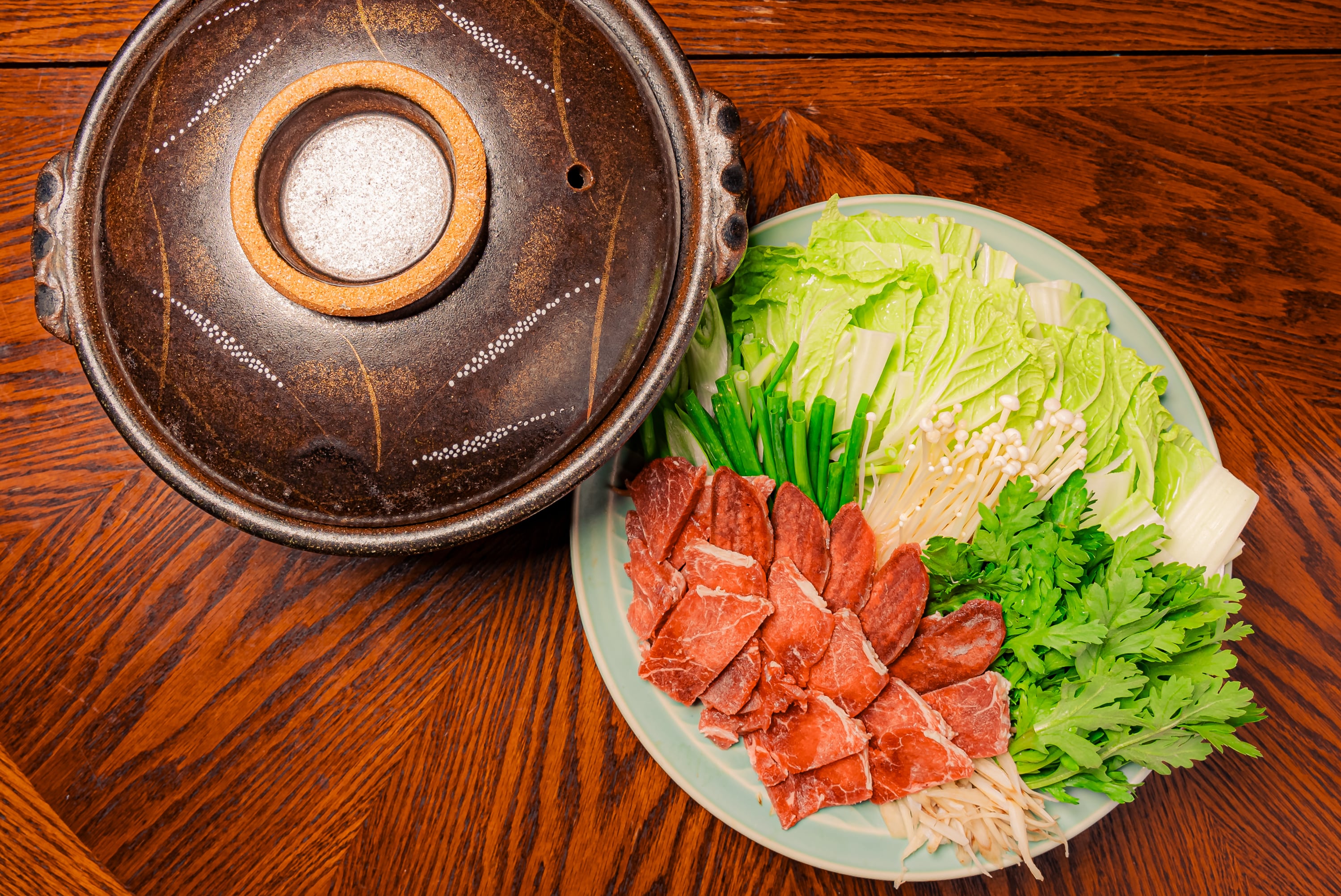 耶馬渓でとれた鹿を、耶馬渓牛乳を使用した特製すき焼き風の濃厚スープと頂く当店オリジナルの人気のお鍋です。(召し上がり方説明書付)