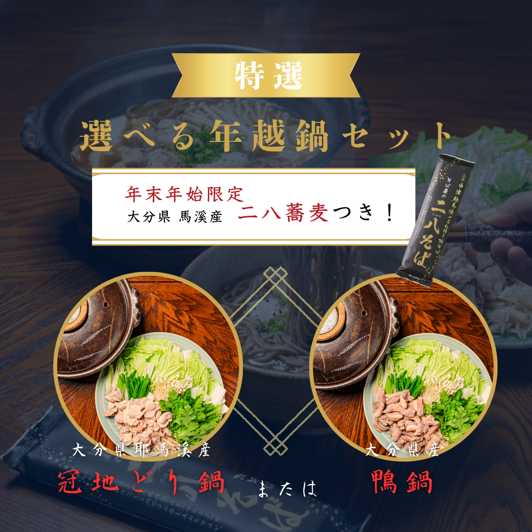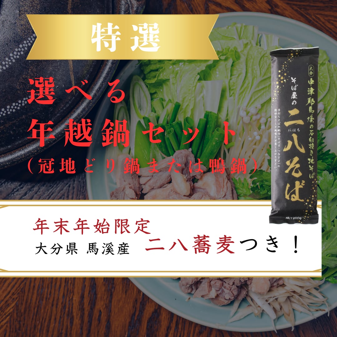 【選べる極上】年越し蕎麦と鴨・地鶏鍋の馳走 (耶馬溪二八そば付き 2〜3人前)